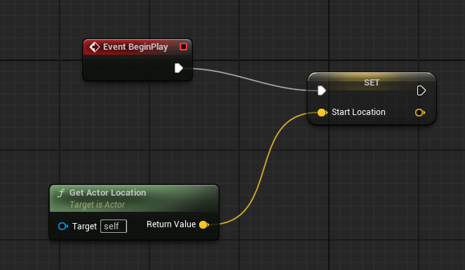 이렇게 연결하면 게임이 시작되면, 해당 폰의 위치 값을 찾아서 벡터 함수 Start Location 에 저장한다는 소리이다.