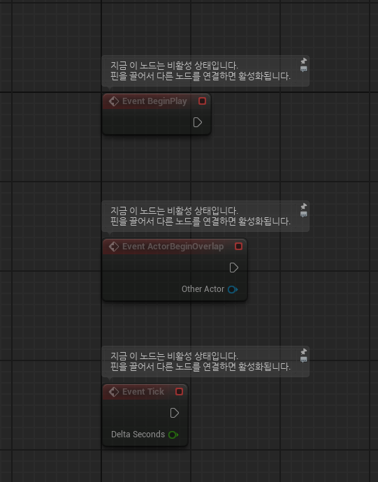 Event BeginPlay는 "게임이 시작될 때 딱 한번만 실행되는 노드"