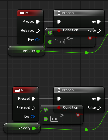 이제 우리는 M키를 누를 때는 Velocity의 값이 증가하고, N키를 누를 때는 Velocity 의 값이 감소하게 만들 계획이다.
