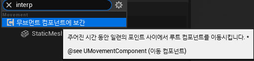 [무브먼트 컴포넌트에 보간]을 클릭하면