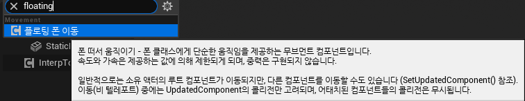 플로팅 폰 무브먼트는 [폰 액터]를 움직여주는 컴포넌트이다.