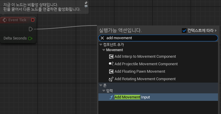 Add Movement Input은 "이동 입력을 주는 노드"이다.