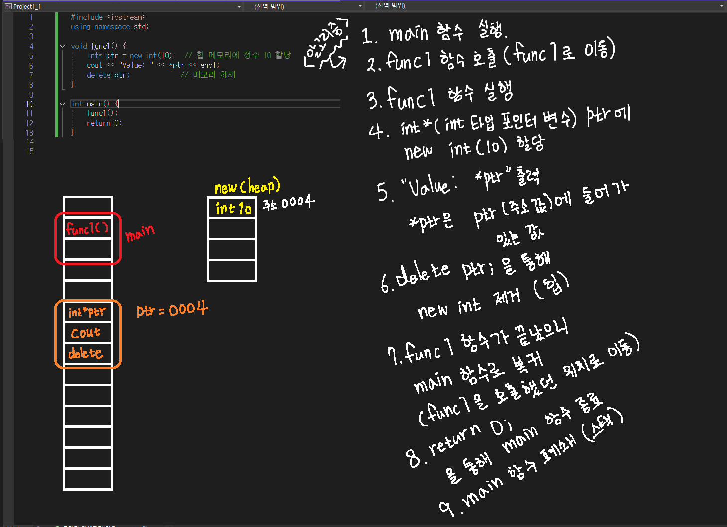 - 동적 할당된 객체와 배열을 저장한다.