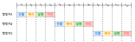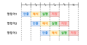Execute(명령어 실행 단계) : 해석된 명령어에 따라 ALU(산술 논리 장치)에서 연산을 수행하거나, 데이터를 이동하거나, 분기를 수행한다.