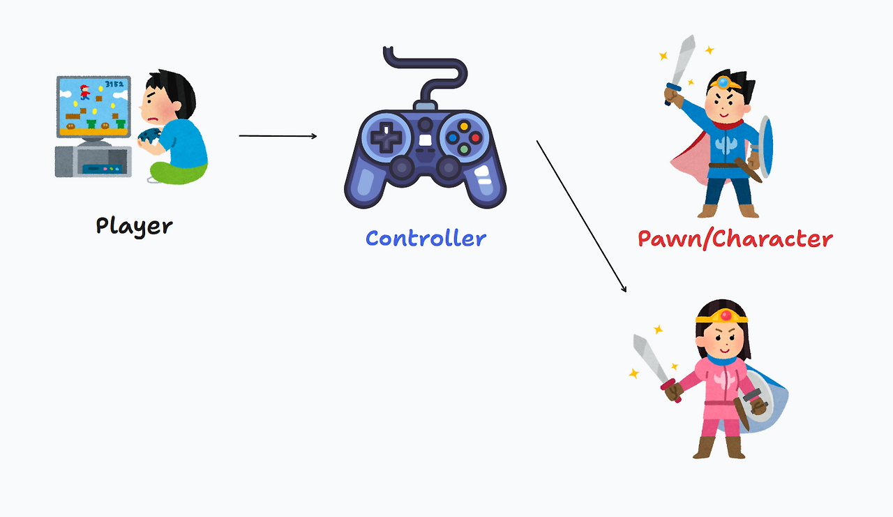PAWN(폰) : 처음에는 체스에 존재하는 말 중 하나인 폰을 지칭하는 용어인 줄 알았으나 언리얼 엔진에서는 캐릭터를 칭하는 용어였다.